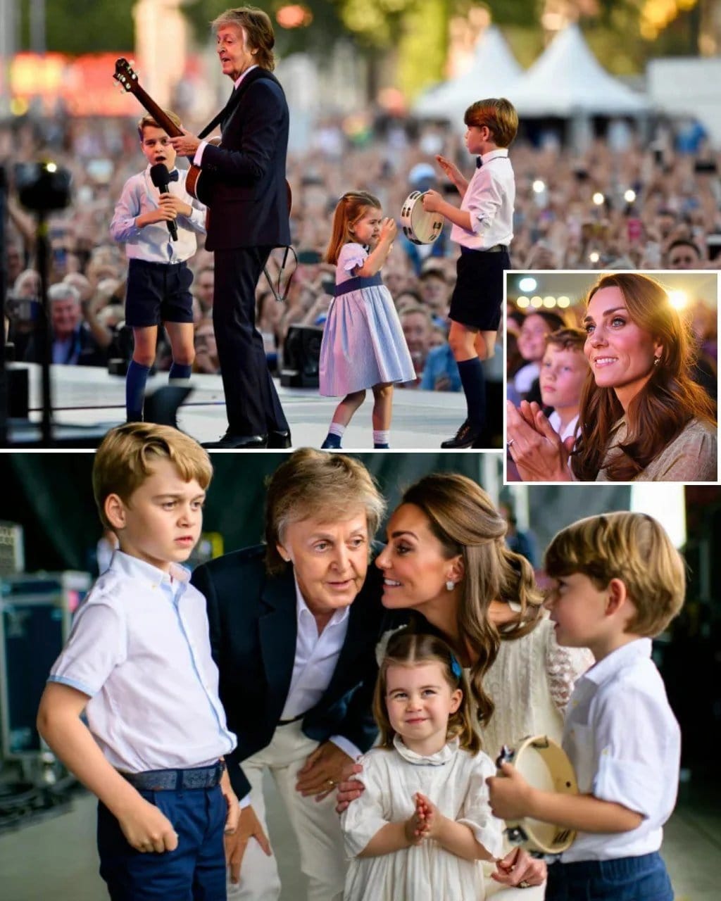 Without pomp or herald’s cry, the children ascended the stage, and Sir Paul struck the first chord of a ballad most beloved — “Hey Jude”, a hymn of comfort and courage sung through the ages. And lo! The multitude, numbering in the thousands, beheld a sight most precious: young royals at play in harmony with a legend of old.