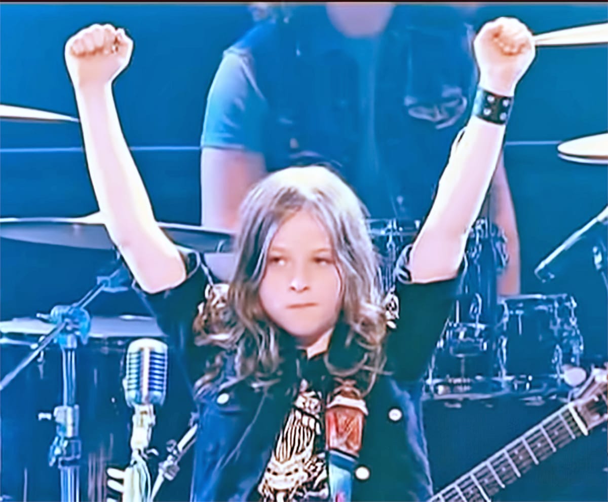 Taking to the stage on Australia’s Got Talent, Callum stunned both judges and the audience with an electrifying performance of Metallica’s iconic “Enter Sandman.” Dressed head-to-toe in metal gear and gripping a guitar nearly as big as he is, the young rocker didn’t just play the song—he owned it. With a flying kick and a cascade of riffs, Callum brought the house down, proving that talent knows no age.