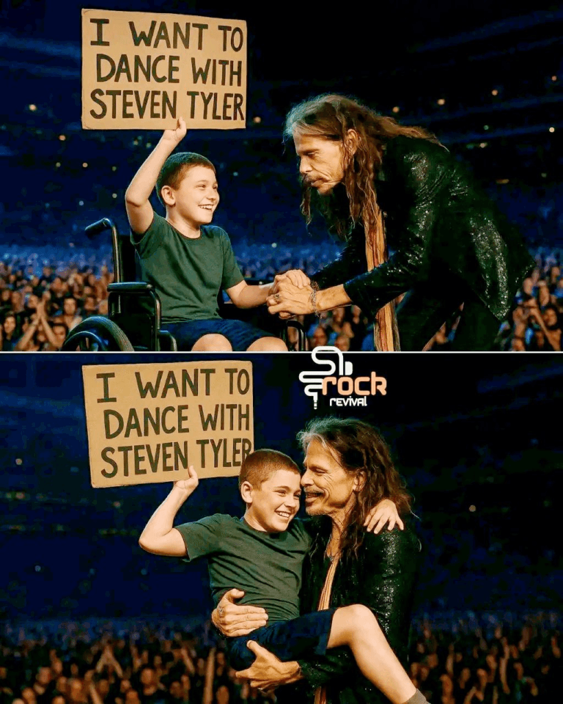 As Steven Tyler and the boy danced together, the crowd didn’t just see a rock legend—they saw compassion, grace, and the raw beauty of kindness. For those few minutes, titles, fame, and physical limitations disappeared. All that remained was a rhythm shared by two hearts.