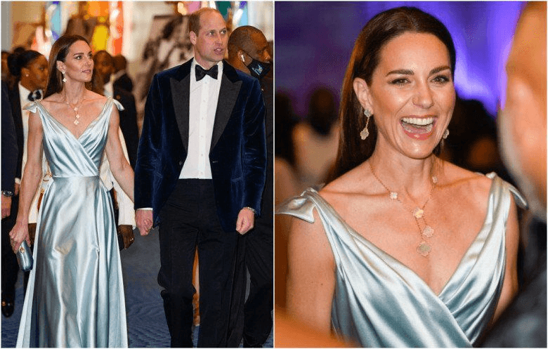 From the shadows, Prince William stepped forward in a classic black tuxedo and took his place at the piano. Moments later, to the audible gasps of those gathered, Princess Catherine emerged in a flowing pale blue gown—strikingly similar to one Diana wore during a 1995 UNICEF gala—and wearing her late mother-in-law’s iconic sapphire earrings.