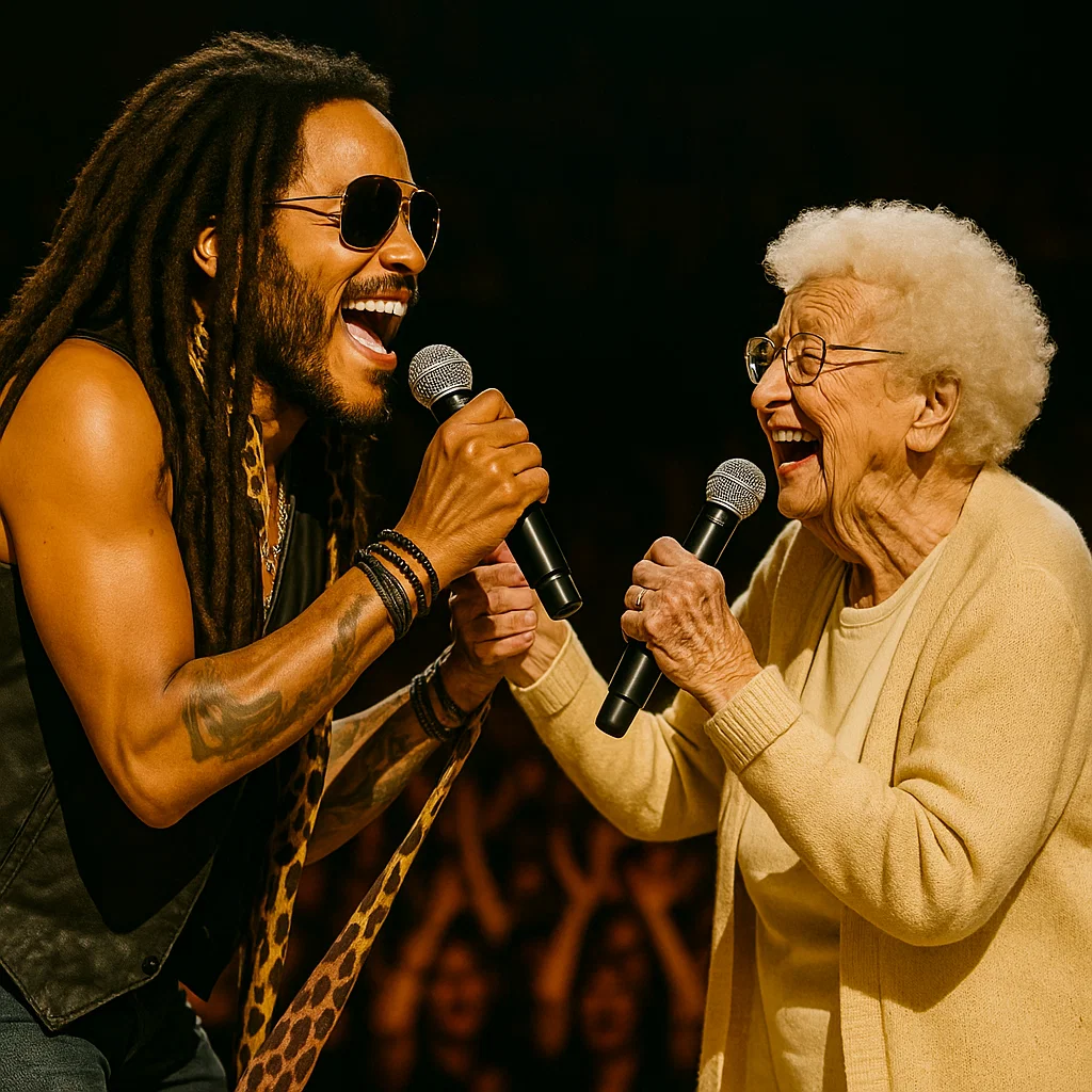The crowd erupted in cheers, but the woman simply smiled and lifted the microphone as if greeting an old friend. Then she began to sing. Her voice was soft, worn by time, yet still alive with the spark of youth. Without hesitation, Kravitz joined her. Together, their voices intertwined, creating a melody that was more than music — it was memory, love, and a lifetime of connection poured into song.