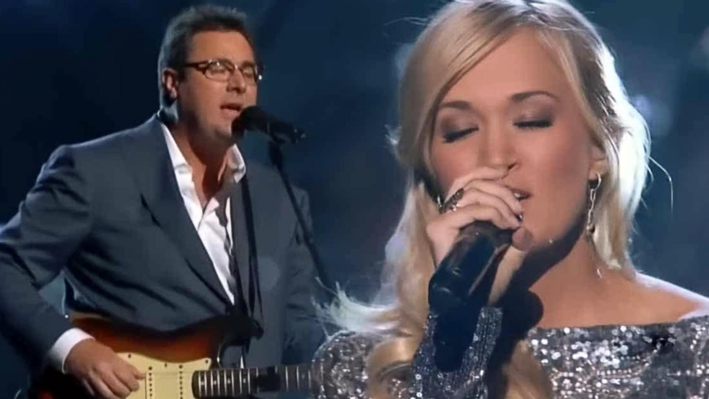 As the final verse approached, Carrie’s voice cracked, her emotion spilling over. Vince, steady and weathered by years of singing through love and loss, lifted her with his harmony, ensuring the song never faltered. Their voices rose together, a soaring testament to resilience and grace, carrying the weight of a nation’s admiration and a family’s farewell. When the last note faded, no applause broke the silence—only the soft sound of tears and the collective breath of a room forever changed.
