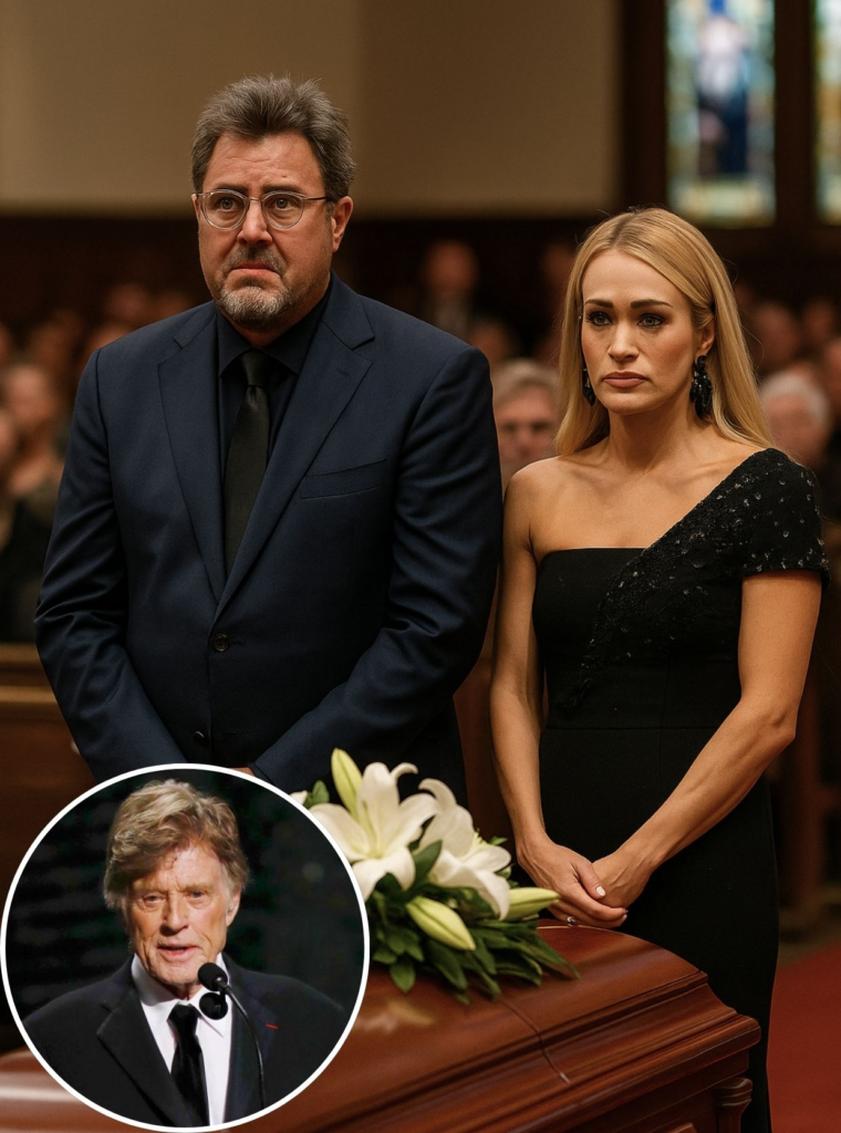 Vince Gill joined her, his warm tenor weaving seamlessly into Carrie’s melody. Their voices blended in a harmony that felt timeless, a fusion of country grit and gospel light. It was not merely a duet but a benediction, a shared offering that carried the weight of Redford’s legacy—not just as an actor or director, but as a dreamer who inspired generations to see the world through a lens of beauty and truth. The music seemed to conjure memories of Redford’s life, from the open plains of The Horse Whisperer to the rebellious spirit of The Sting.
