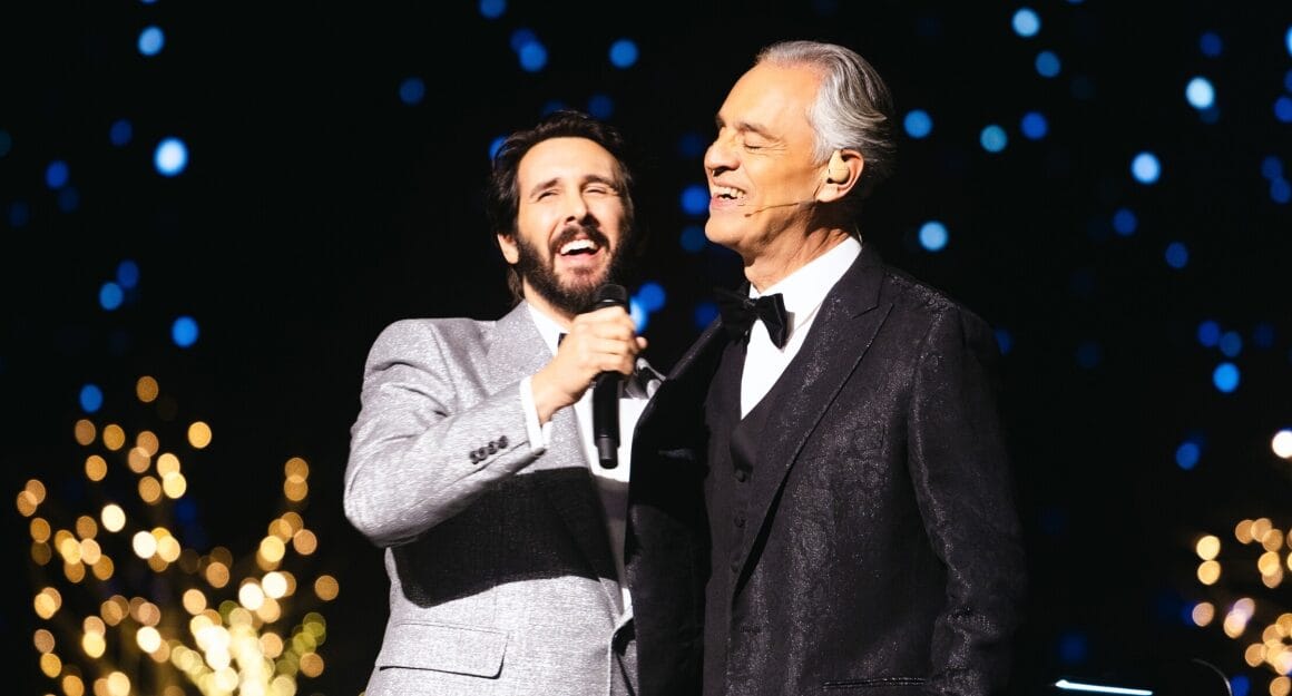 Appearing like a vision from the shadows, Groban approached Andrea Bocelli with a warm nod and a single mic. And then, without a word, the two titans of music launched into a spontaneous duet of “The Prayer”—a song made iconic by Andrea and Celine Dion, now reborn in a moment so intimate and breathtaking, it seemed unreal.