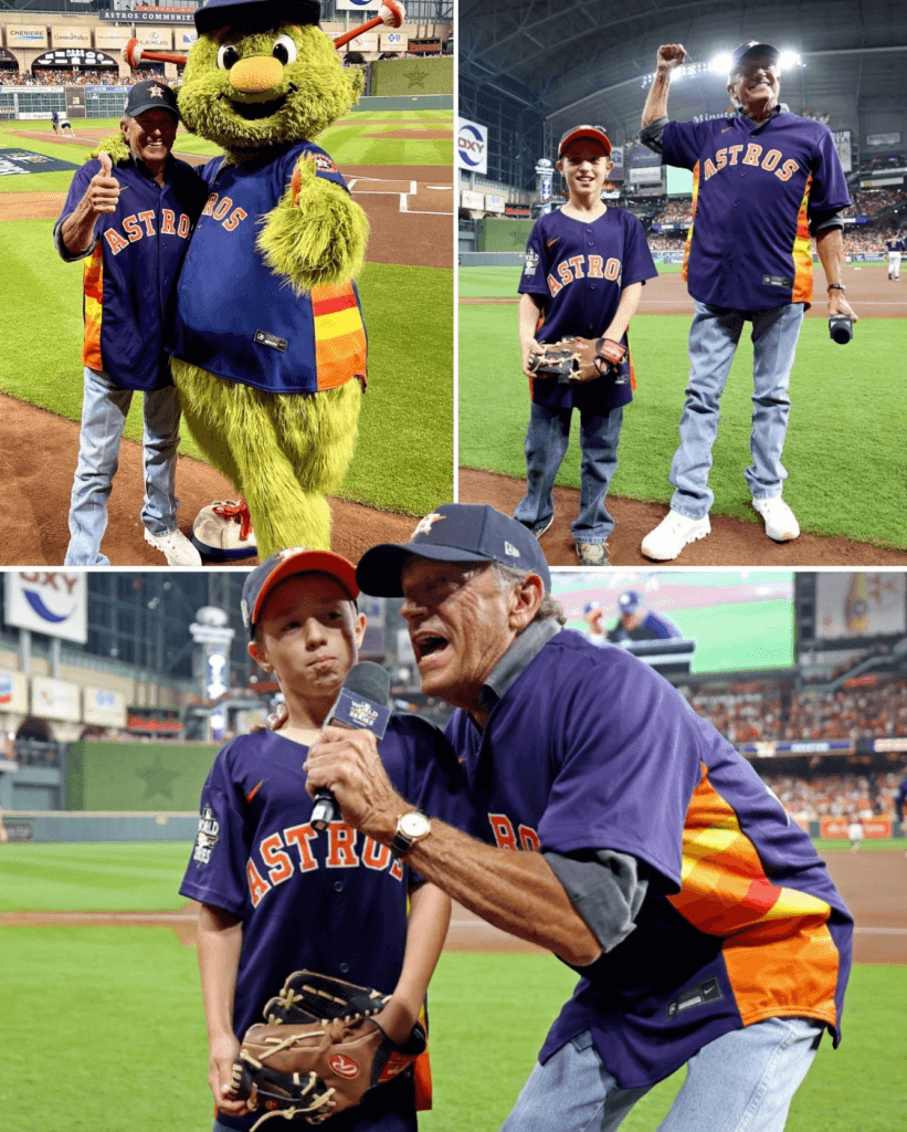 Far from the George Strait the world envisions — not the cowboy on stage beneath spotlights, not the King of Country with Amarillo by Morning echoing across sold-out arenas — here he is in an Astros jersey, laughing and sharing the field with his grandson. In this moment, he is a grandfather first, a superstar second.