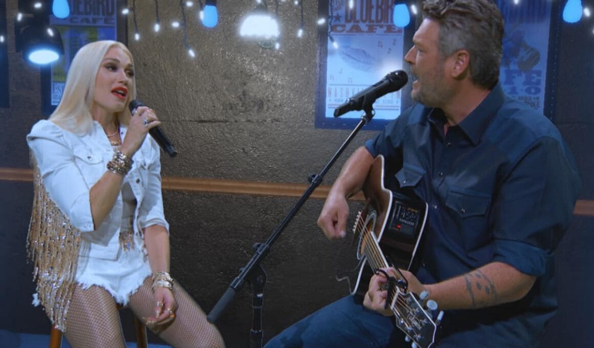 Blake Shelton and Gwen Stefani turned up the romance at the 55th Academy of Country Music Awards with a heartfelt performance of their duet “Happy Anywhere,” serenading each other from a virtual Bluebird Café using clever green-screen “movie magic.” Though they weren’t physically on the iconic Nashville stage, their chemistry made it feel like they were singing side by side in front of a packed house.