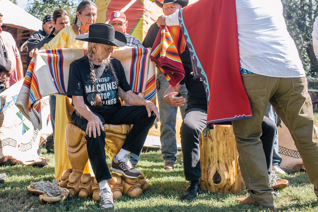 Willie, in his trademark red bandana and weathered hat, bowed his head with tears glinting under the brim. “I’ve chased a lot of horizons,” he murmured, his voice a soft rasp. “But this—this feels like coming home. Farmers, Natives—we’ve been fighting the same wolves for generations. Honored don’t cover it. Grateful’s closer.” Beside him, Neil Young, stoic in flannel, clasped Means’ hand and said simply, “My songs were weapons. But these people? They’re the warriors. The fight isn’t over—it just keeps changing shape.”