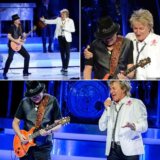 There are nights in music history that feel almost mythical the moment they happen — and this was one of them. For the first time ever, guitar legend Carlos Santana and rock icon Rod Stewart joined forces on stage, delivering a performance that was equal parts surprise, celebration, and soul.