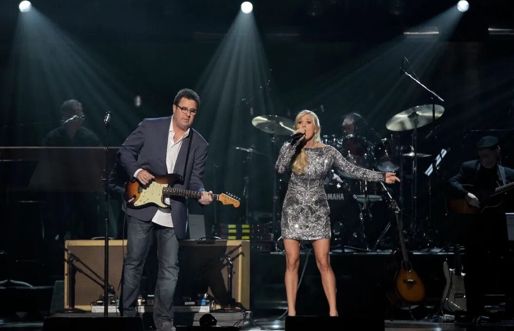 From the very first note, Carrie’s silky, powerful voice merged flawlessly with Vince’s legendary harmonies. The contrast between her sultry delivery and his rich, expressive tone created a dynamic that left the audience in awe, every lyric resonating with emotion and reverence.