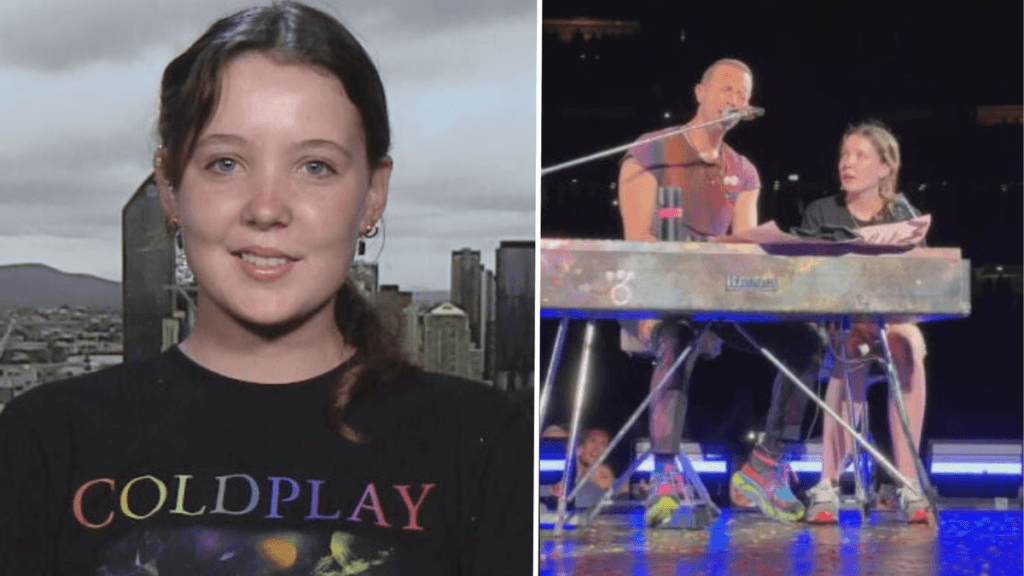Once on stage, the young cancer survivor was seated beside Chris at the piano. Together, they performed Coldplay’s iconic anthem “Fix You”, their voices blending in a tender, emotional duet. As the song swelled, thousands of fans raised their phone flashlights, turning the stadium into a sea of twinkling lights—like a galaxy formed in tribute to resilience, hope, and the healing power of music.