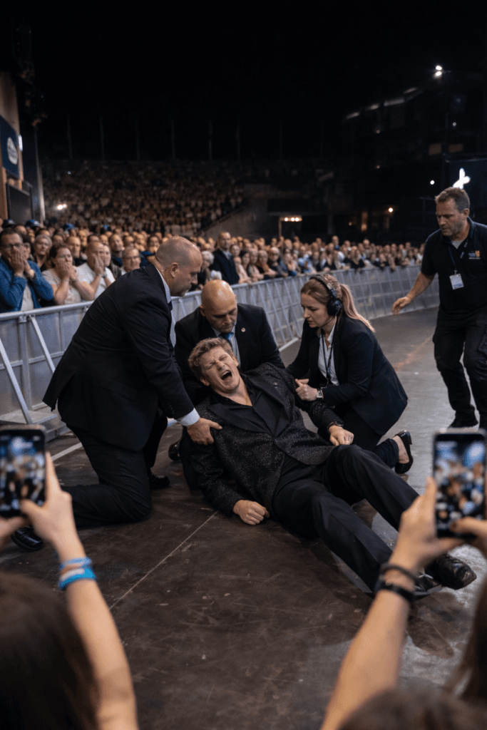 At first, confusion rippled through the crowd. Fans exchanged worried glances as the music faded and movement on stage slowed. The atmosphere, once lively and warm, grew noticeably quiet, replaced by an uneasy stillness that felt heavier with every passing second.
