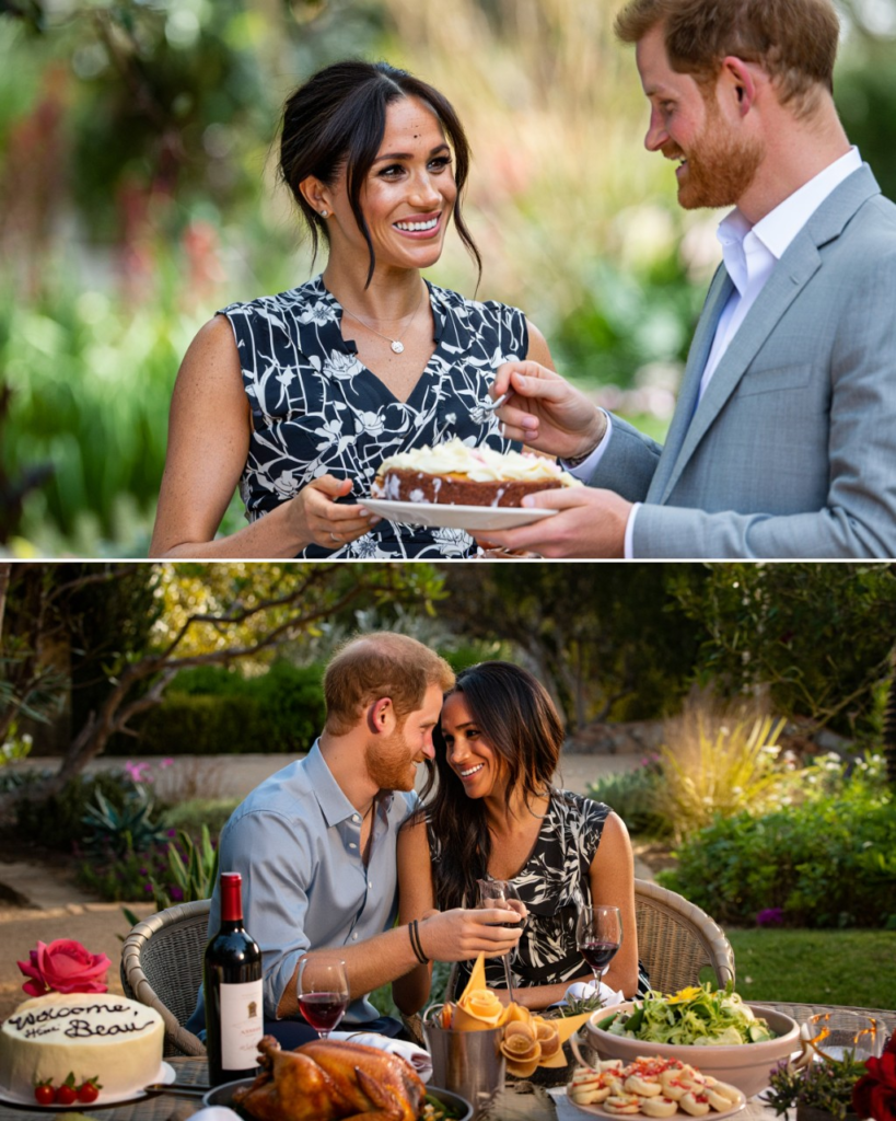 The setting was simple, serene, and meaningful: a candlelit table in their garden, surrounded by greenery and soft music. On the menu were Prince Harry’s favorites—golden roasted chicken, fresh seasonal salad, a rich red wine, and a delicate dessert. But the centerpiece was the birthday cake, bearing a tender message: “Welcome Home, Beau.”