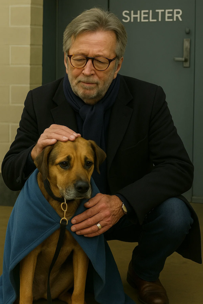 The 78-year-old music legend—known to the world as one of the greatest guitarists of all time—didn’t head straight to the office or demand to see paperwork. Instead, he made his way to the very back, where the oldest resident lay: Rusty, a 14-year-old golden retriever weakened by a stroke. Clapton knelt beside him, gently stroking his fur and whispering quietly for nearly ten minutes.