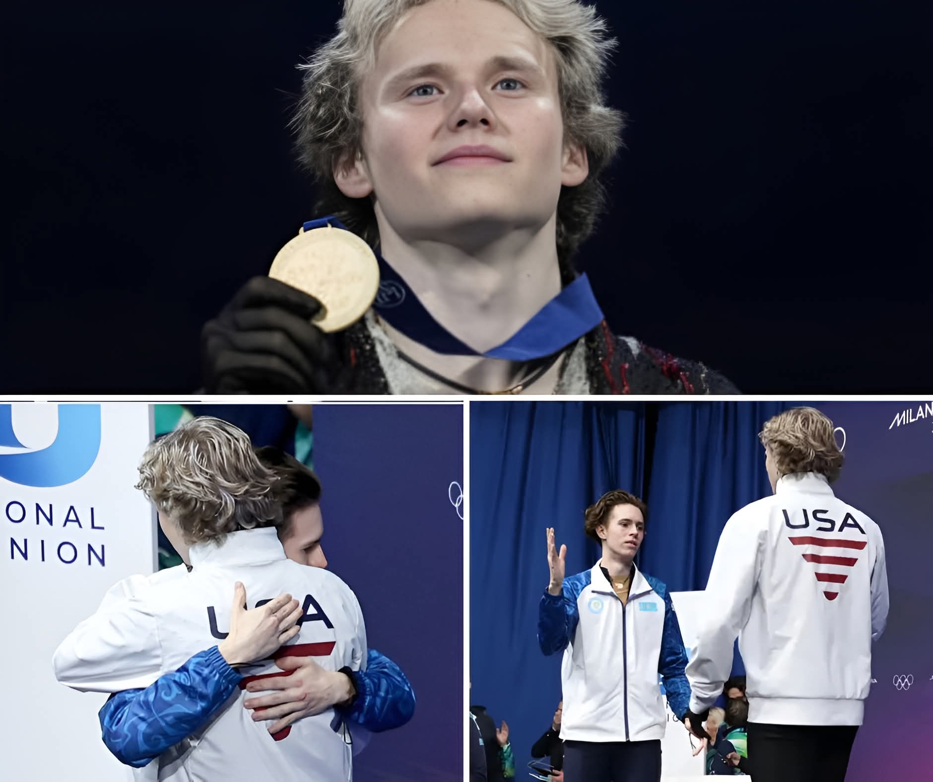 Rather than retreating into disappointment, Malinin approached the medalists, including gold winner Mikhail Shaidorov. He offered sincere congratulations — a handshake, a few respectful words, and a nod that reflected genuine sportsmanship rather than obligation.