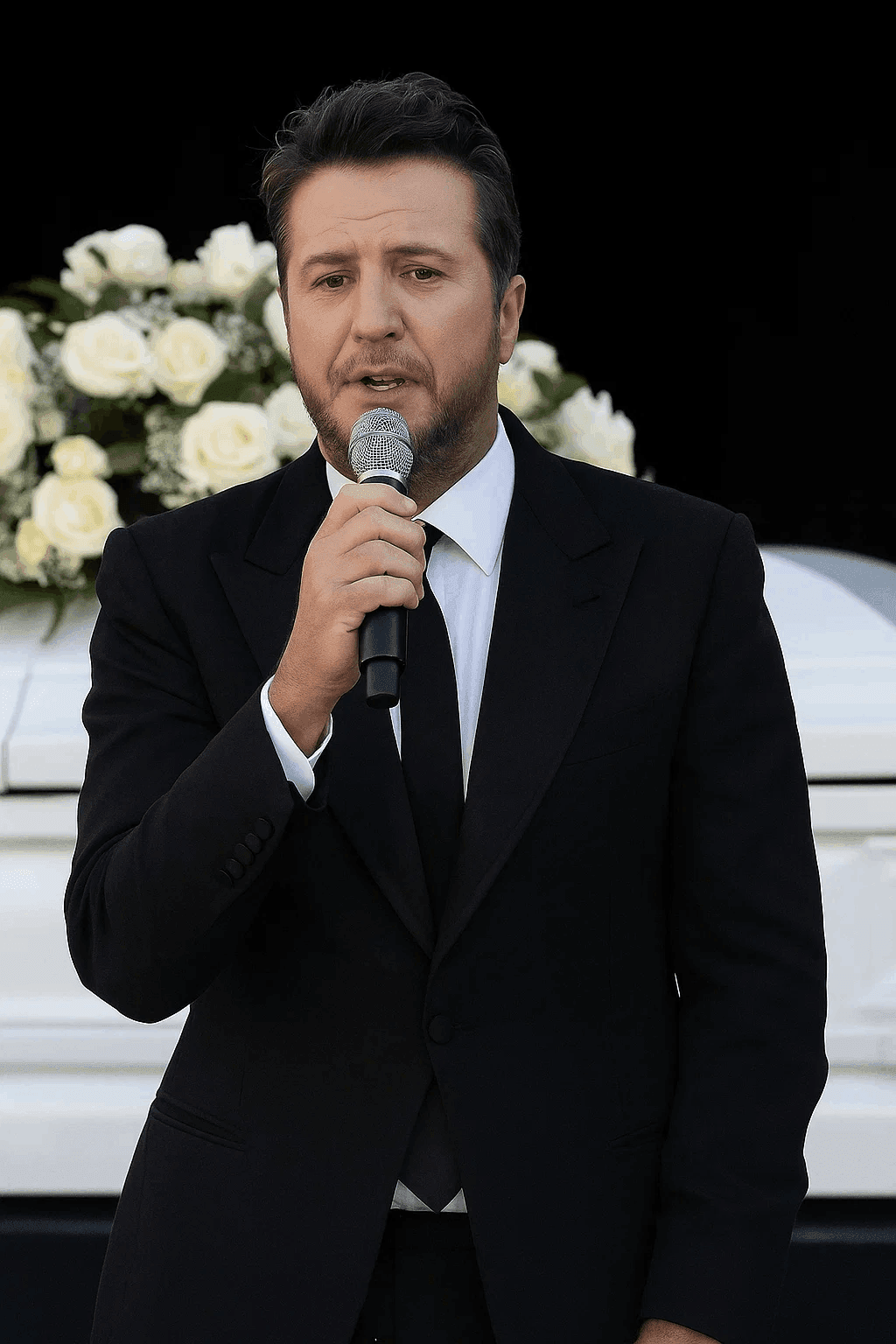 As he stepped into the spotlight, the crowd stilled. His eyes, heavy with emotion, said more than any lyrics could. In a voice barely louder than a whisper, he spoke five simple words: