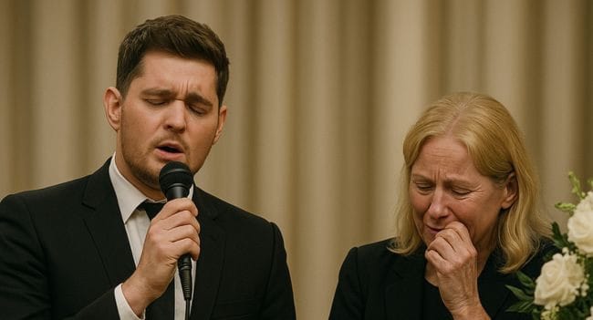 The internationally beloved artist appeared unannounced at Broussard’s Mortuary in Beaumont, Texas, dressed in black, his face solemn. As mourners sat in stunned silence, Bublé stepped forward, bowed his head, and softly asked, “May I sing her home?” What followed was a moment so raw, so deeply human, that it left every person in the room in tears.