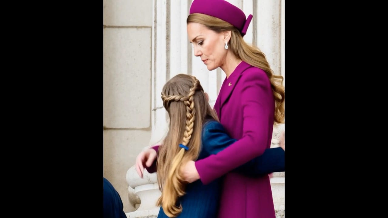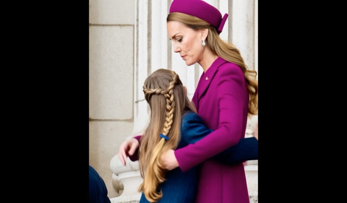 The gathering beheld the martial procession and the soaring of the King’s aeronautical host, the Red Arrows, who did paint the heavens with red, white, and blue in tribute to valor past. The multitude watched in reverence, yet their gaze was oft drawn to the tender bond of mother and child. For lo, Princess Charlotte turned to her mother, the fair Catherine, and with sweet voice declared her love, saying, “Mother, I love thee.”