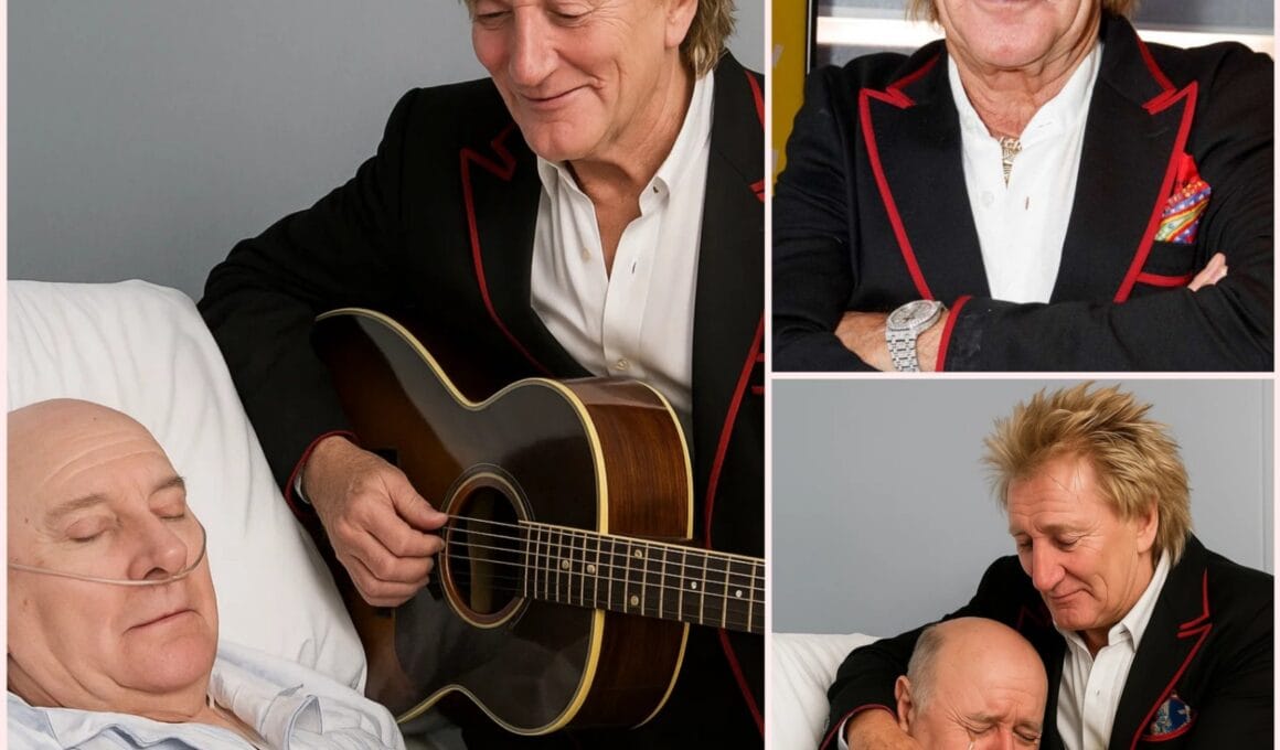 Lo, on that solemn day, there came unto him another noble minstrel of the age — Sir Rod of Stewart, whose hair, like flame kissed by silver, did flow with time’s passage. In his hand he bore a relic most cherished — a lyre of electric make, aged by many journeys, seasoned by countless songs. Silently he trod the marble halls, past watchers in white robes, until he came to the chamber where Sir Phil lay.