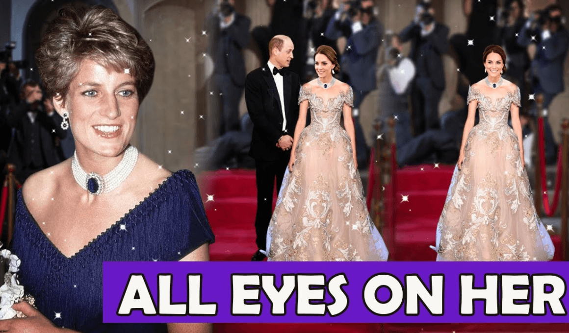 Yet though her garment shone with splendor, it was the jewel upon her neck that drew forth the breath of all present. For about her fair throat lay the precious necklace of Diana, the late Princess of Wales, whose memory abideth ever in the hearts of men. This heirloom, glistening with stones of fire, was bestowed upon Catherine by her lord, Prince William, and in wearing it she joined the grace of the present with the spirit of the past.