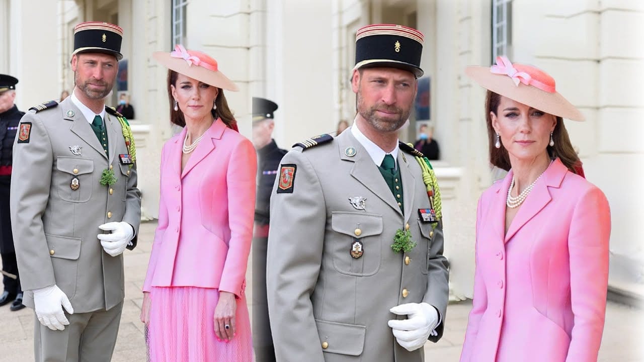 At the state visit of French President Emmanuel Macron and his wife Brigitte, Catherine once again demonstrated her flair for sartorial storytelling. For the daytime welcome on 8 July, she chose a blush-pink Christian Dior ensemble—a rare nod to French haute couture. The tailored wool-and-silk bar jacket paid homage to Dior’s iconic 1947 New Look, freshly reimagined by creative director Maria Grazia Chiuri. The flowing ballerina-length skirt brought an ethereal lightness, softly echoing the day’s diplomatic warmth.