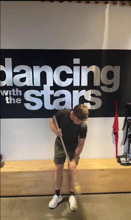 In the next shot, she handed him a giant mop and pointed at the entire DWTS stage. The cast burst into laughter as Robert dramatically sighed, rolled up his sleeves, and began “cleaning his punishment” across the ballroom floor.