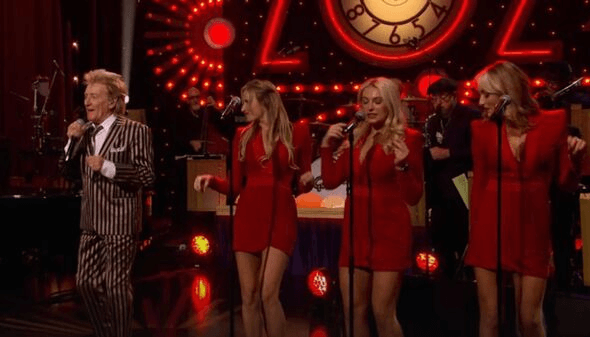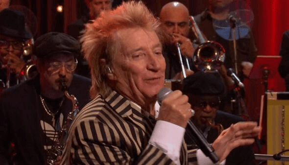 Before the first note had left his lips, Jools Holland addressed the audience, announcing that Sir Rod, in all his storied glory, graced the show for the very first time. Yet as the singer commenced his performance, the eyes of the realm—notably those of the modern scribes of social media—were drawn as much to his attire as to his voice. Many likened his striking ensemble to that of the fantastical figure Beetlejuice, eliciting commentary both playful and bewildered.