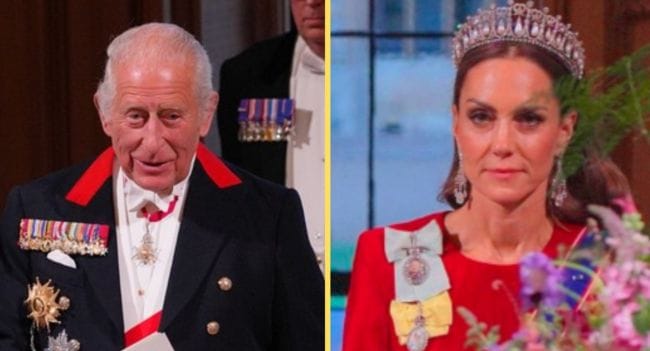 In a moment that no one anticipated, the 76-year-old monarch turned from the head table and fixed his gaze on his daughter-in-law, Princess Catherine, seated beside Prince William. His voice wavered slightly, but his words rang clear. “Catherine, you’ve given this family a kind of grace and quiet strength we never knew we needed,” he said. “In every way, you are my daughter.”