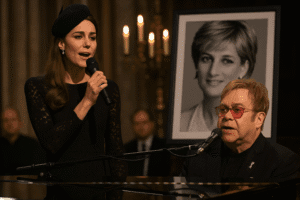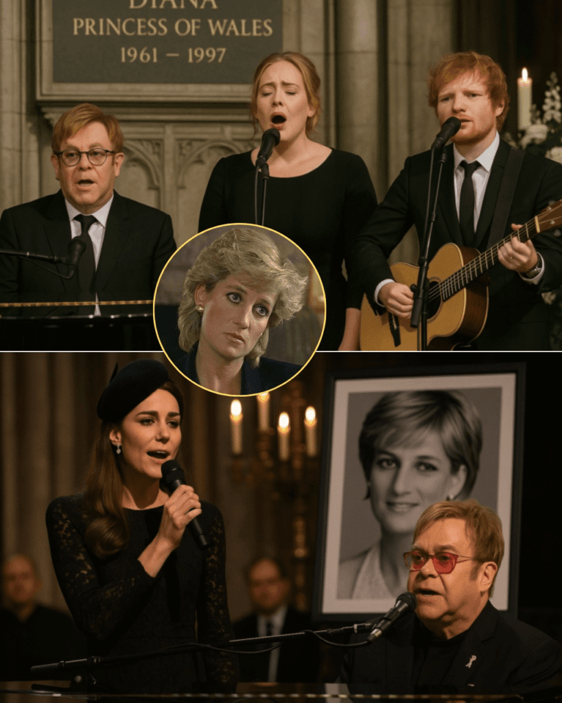 Held in secret, far from media attention and flashing cameras, the intimate evening brought together three of Britain’s most beloved artists: Sir Elton John, Adele, and Ed Sheeran. Lit only by the soft glow of chandeliers and the polished reflection of Diana’s old Steinway piano, the gathering was less a performance than a quiet act of remembrance — one curated entirely by Kate herself.