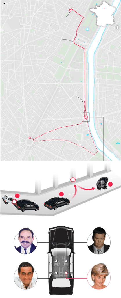 To flee the eyes of ever-watchful heralds and the clamor of flashing lenses — those shadow-chasers known as paparazzi — the pair were placed within a noble chariot: a black Mercedes of the house of Benz, driven by Henri Paul, who, unbeknownst to them, was under the influence of strong spirits.