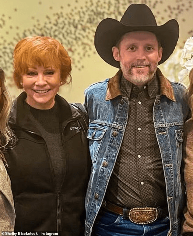 Near the casket, Reba McEntire—Brandon’s stepmother and a longtime friend and collaborator of Brooks & Dunn—sat with her gaze locked on the two men. Her hands were clasped tightly, her face intent, as if the music were speaking directly to her soul. Behind her, mourners including Blake Shelton, Trisha Yearwood, and Garth Brooks sat quietly, heads bowed.