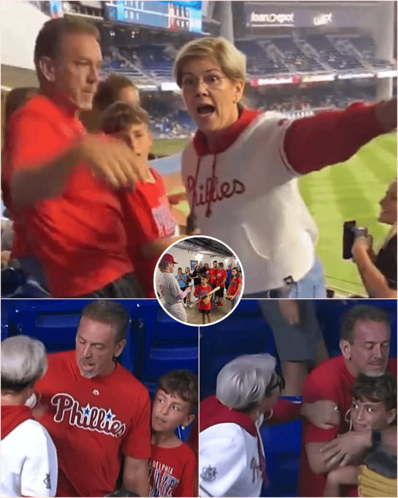 Then came the disruption. A woman in a white Phillies jersey stormed into their row, demanding the ball for herself. She jabbed her finger, raised her voice, and pressed closer as the crowd began to boo. The boy clutched his gift tighter, his joy collapsing into confusion. His father tried reasoning, but when it was clear she wouldn’t relent, he made a heartbreaking decision: he slipped the ball from his son’s hands and gave it to her.