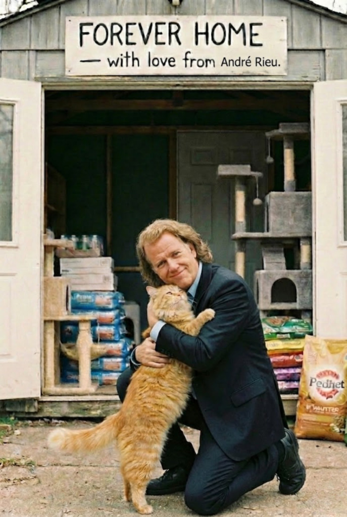 In the corner of one cage, curled tightly on a worn blanket, was Buddy. Eleven years old. Overlooked for nearly a decade. Too tired to lift his head. Too close to the end to hope for anything more. André knelt beside him without a word, resting on the concrete floor, gently scratching behind the cat’s ear with the same care he gives his violin. For a long moment, there was only silence.
