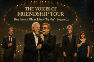 The centerpiece of it all? London’s O2 Arena. Insiders whisper of a moment already being called the performance that will make the world cry: Tom Jones and Elton John joining forces for a breathtaking duet of “My Way.” Not just a song, but a farewell hymn — a statement of legacy, love, and the courage to say goodbye.