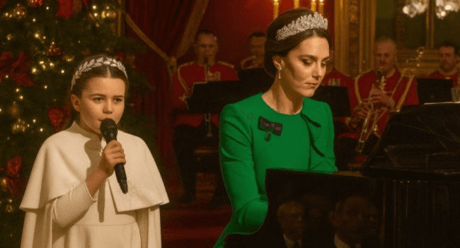 Then, in a scene no one expected, Kate — wearing one of Diana’s beloved ivory gowns — sat at the grand piano. As her fingers danced across the keys, Charlotte began to sing.