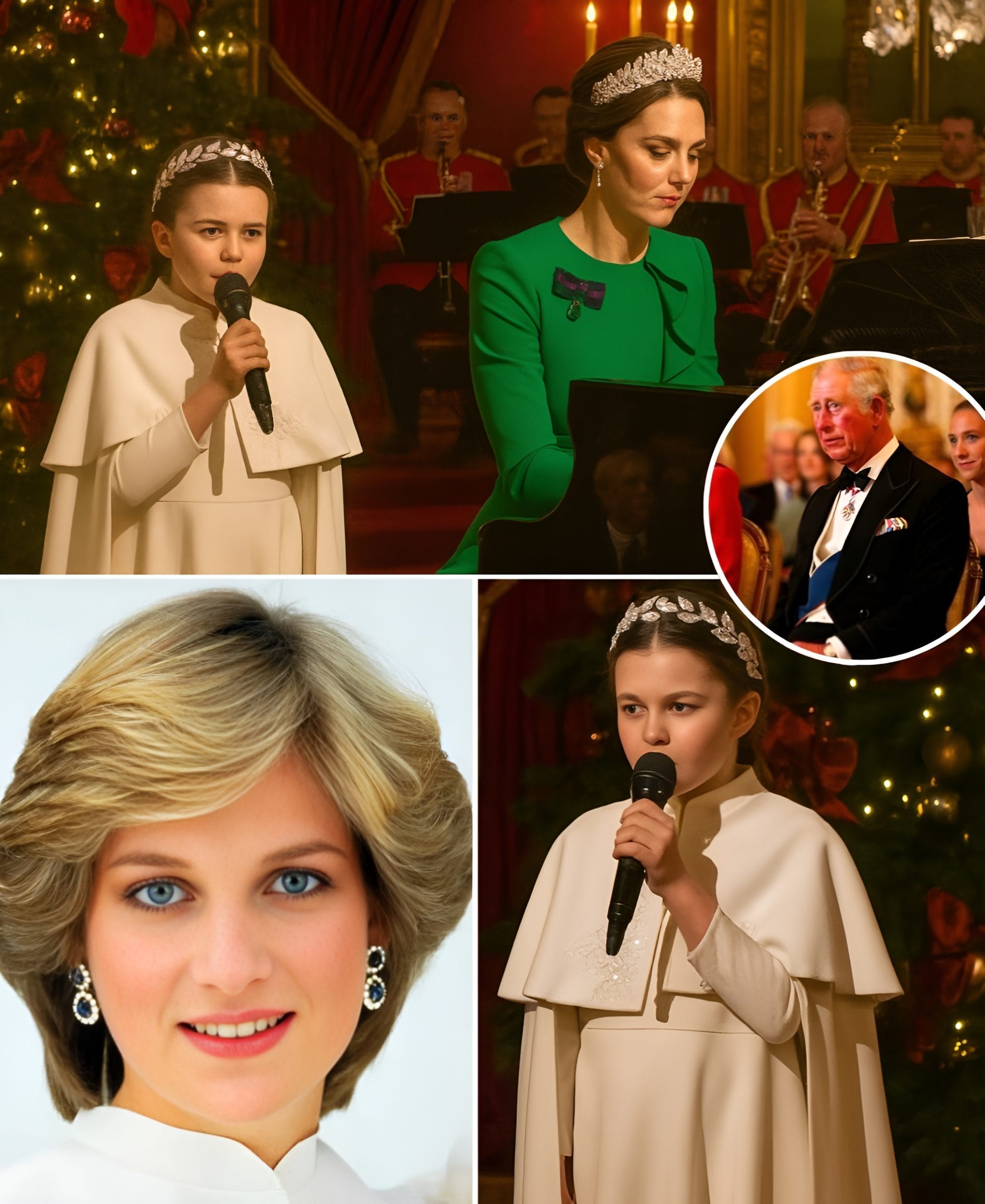Then, in a scene no one expected, Kate — wearing one of Diana’s beloved ivory gowns — sat at the grand piano. As her fingers danced across the keys, Charlotte began to sing.