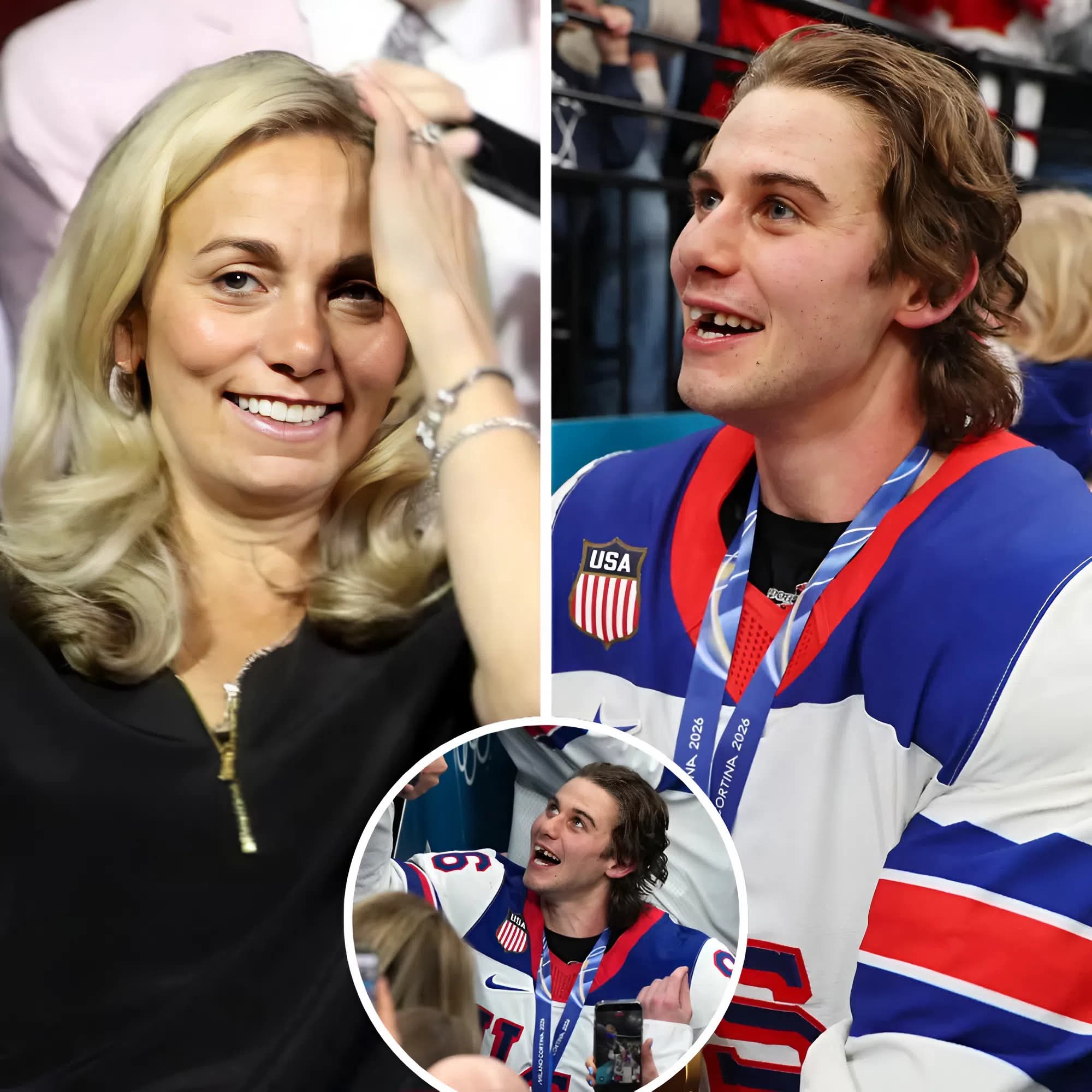 As Jack celebrated on the ice, his mother’s expression in the stands became part of the story — a snapshot of pride wrapped in maternal instinct.