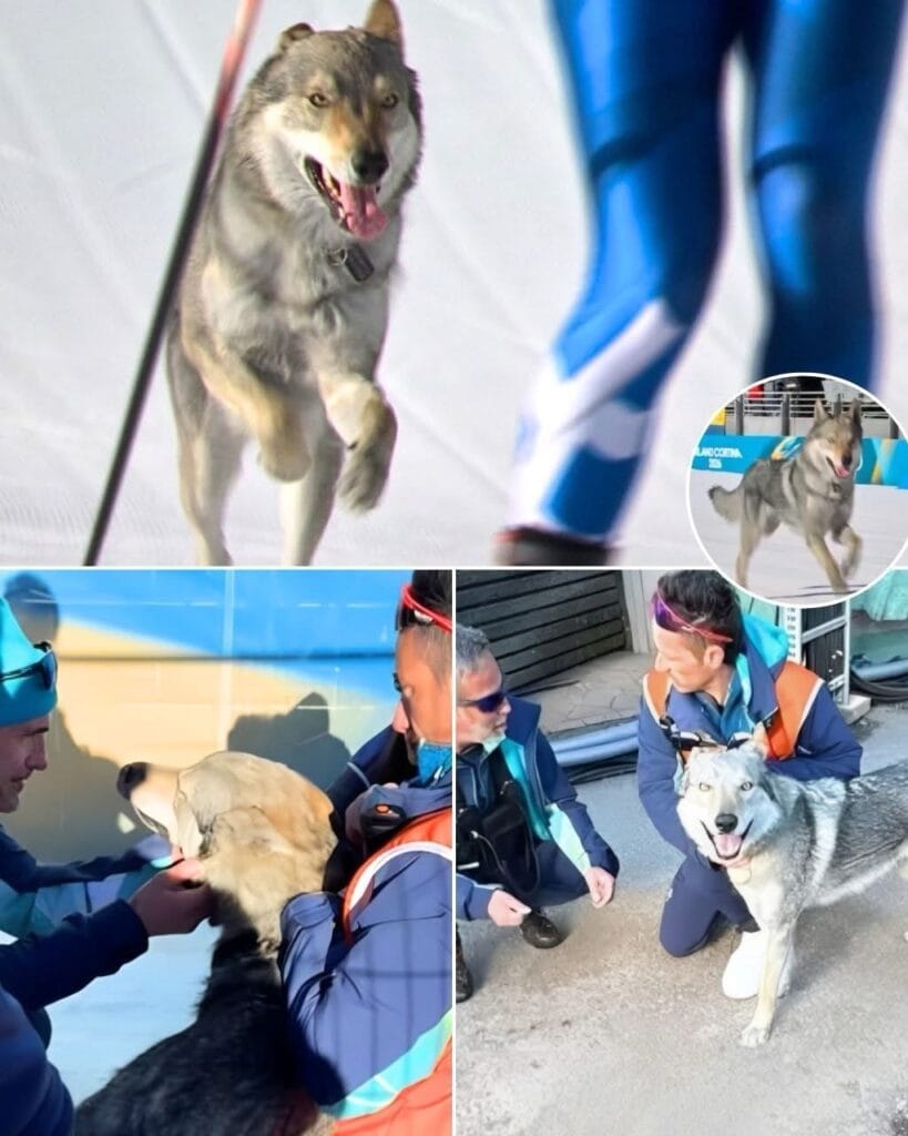 What began as a strange, blink-and-you-miss-it moment during a live Olympic broadcast quickly exploded into one of the most surreal viral stories of the Games. Viewers watched in disbelief as a two-year-old wolfdog named Nazgul suddenly appeared on the course, running alongside elite athletes as if he belonged there. At first, many assumed it was a camera glitch or a replay error — until the commentators realized it was very real.