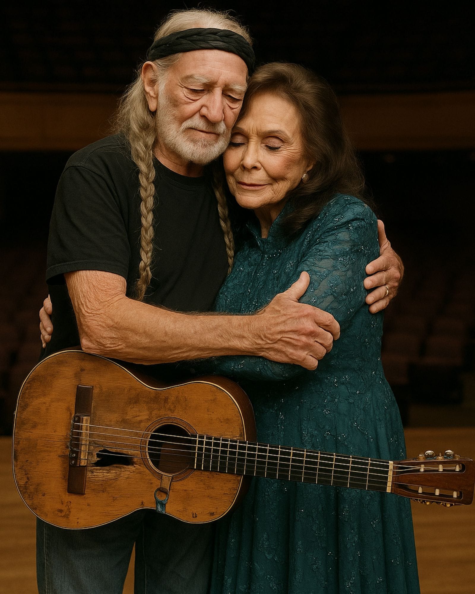 In a quiet, almost sacred moment, two of country music’s greatest legends — Loretta Lynn and Willie Nelson — came together not for fame or fanfare, but for something far more intimate. No roaring crowds, no glittering stage lights. Just an empty auditorium, a guitar, and a song that spoke louder than any grand production ever could.